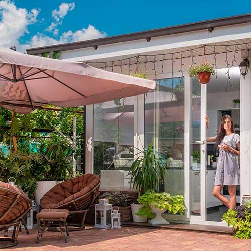Система оконных профилей РЕХАУ GRAZIO — сравнительно новый продукт, ориентированный на тех, кто ценит современные инженерные и дизайнерские решения. В этой системе объединены отличные потребительские характеристики и разумная цена. Благодаря монтажной глубине 70 мм и 5 внутренним камерам система обладает очень хорошей теплосберегающей способностью и позволяет устанавливать энергоэффективный двухкамерный стеклопакет толщиной до 40 мм. Такие окна могут эксплуатироваться даже в суровом северном климате со средней зимней температурой ниже −30°С. Чтобы сэкономить при покупке окон для загородного дома, откажитесь от проемов нестандартной формы, заказывайте конструкции сразу для всего дома: чем крупнее заказ, там больше скидка. Кроме того, на первом этаже можно увеличить количество глухих (не открывающихся) частей окна — они существенно дешевле открывающихся, но их легко будет помыть снаружи.